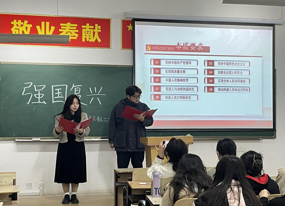 以团支部为单元组织全体学生开展“思想旗帜”“坚强核心”“强国复兴”“挺膺担当”四个专题的学习,通过读原著、交流研讨、团干宣讲、读书分享等方式加强理论学习,注重发挥团支书领学作用,在读原著学原文悟原理上下功夫,团员青年的理论水平进一步提高;