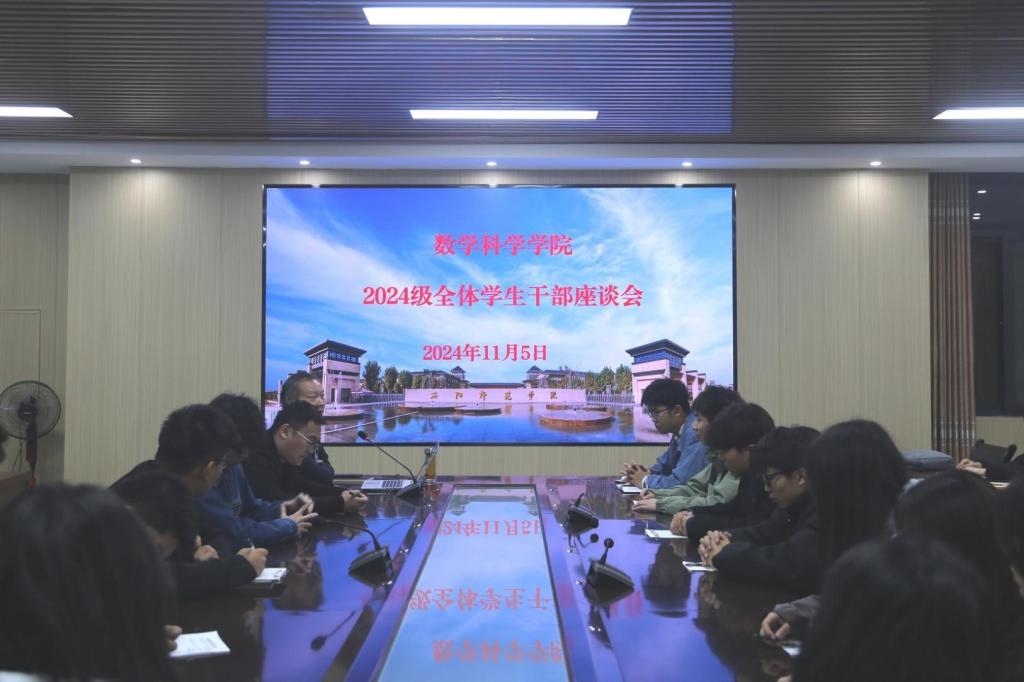 为进一步规范学生干部行为,充分发挥学生干部带头作用,协助班主任与辅导员更好地管理班级事务,11月5日晚,我院在A10-317召开了2024级全体学生干部座谈会。辅导员张浩、黄泊宁及2024级全体学生干部参会,会议由院党委书记董朝宗主持。