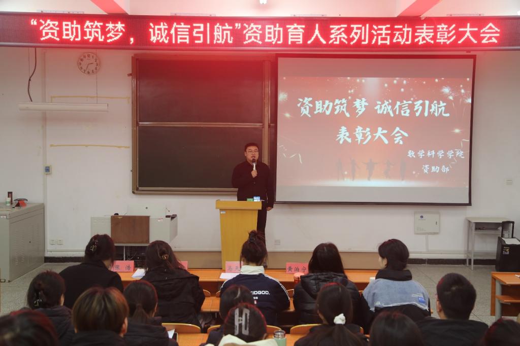 为推动学生资助工作与思想政治教育的深度融合,强化学生诚信意识和感恩意识,我院于12月4日在A10-103举办“资助育人”系列比赛表彰大会。学院党委副书记马天天,育人导师张浩、杨雅云、黄泊宁出席活动,大会由张浩主持。