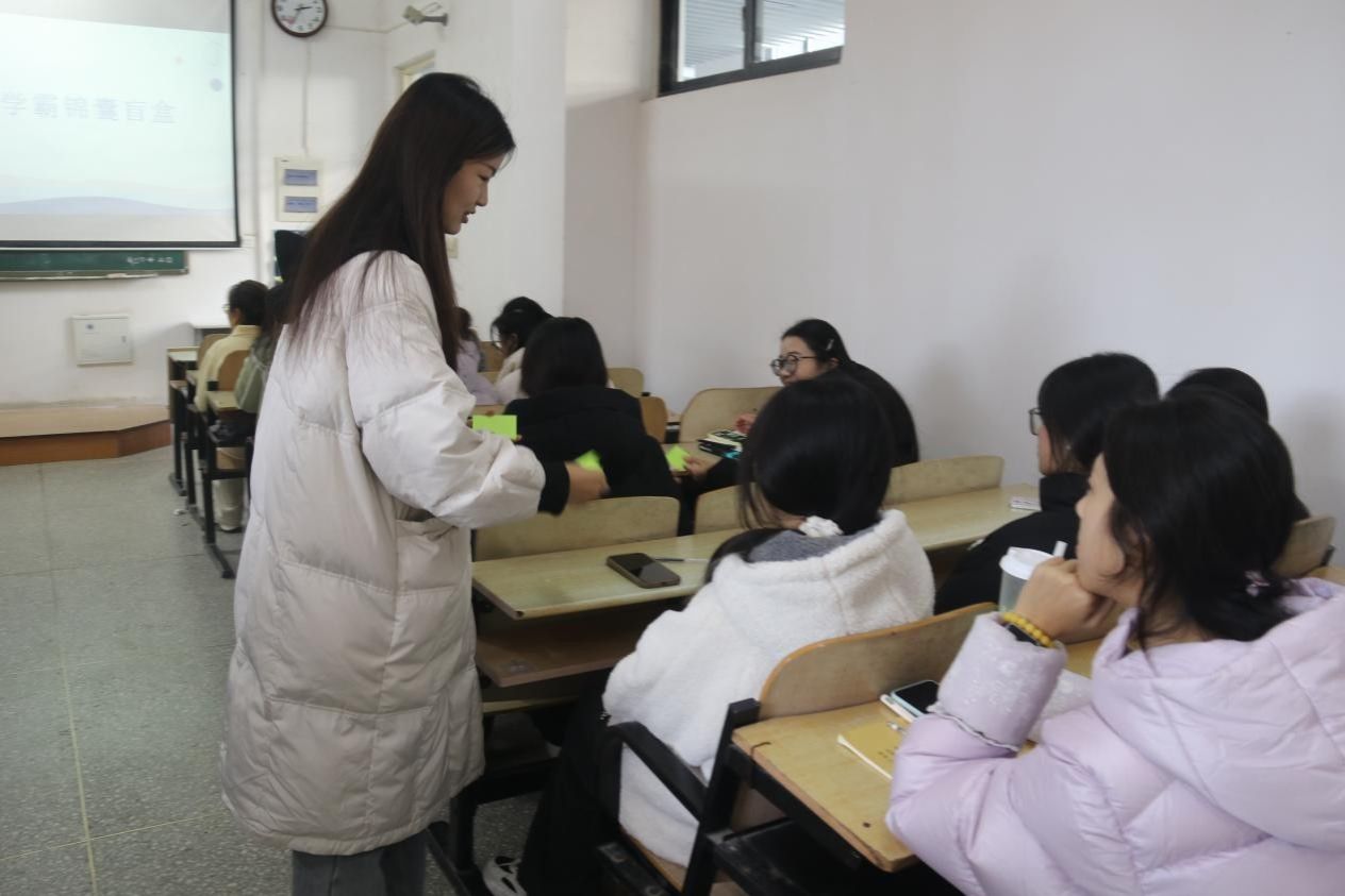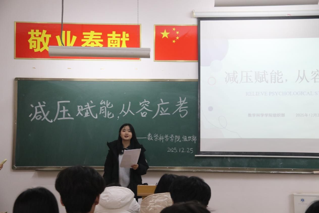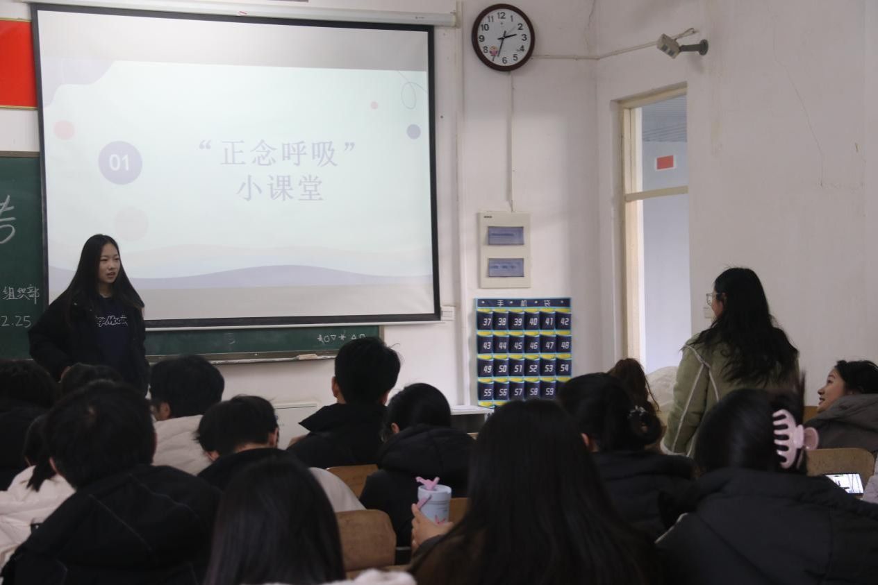 为帮助学生在期末考试前缓解压力、调整状态,12月25日,我院在A10-107开展“减压赋能,从容应考”心理活动。本次活动由我院与龙门三号书院联合举办,通过多种形式的互动体验,引导同学们释放情绪、掌握调适方法,以积极心态迎接考试。