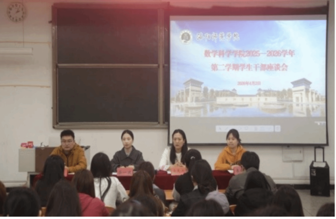 为进一步明确本学期班级学生干部工作方向,4月2日,我院在A10-103会议室召开2025-2026学年第二学期学生干部座谈会。学院党委副书记马天天、辅导员代表及各班班长、团支书、学习委员、纪律委员参加会议。