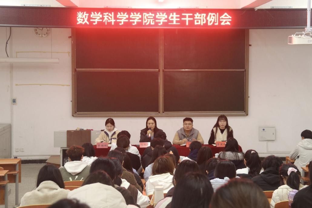 为明确新学期工作目标,强化学生干部的责任意识与服务能力,3月12日下午,数学科学学院在A10-103召开2026年春季学生干部工作会议。我院党委副书记马天天、辅导员代表及全体学生干部参与此次会议。此次会议由辅导员张浩主持。