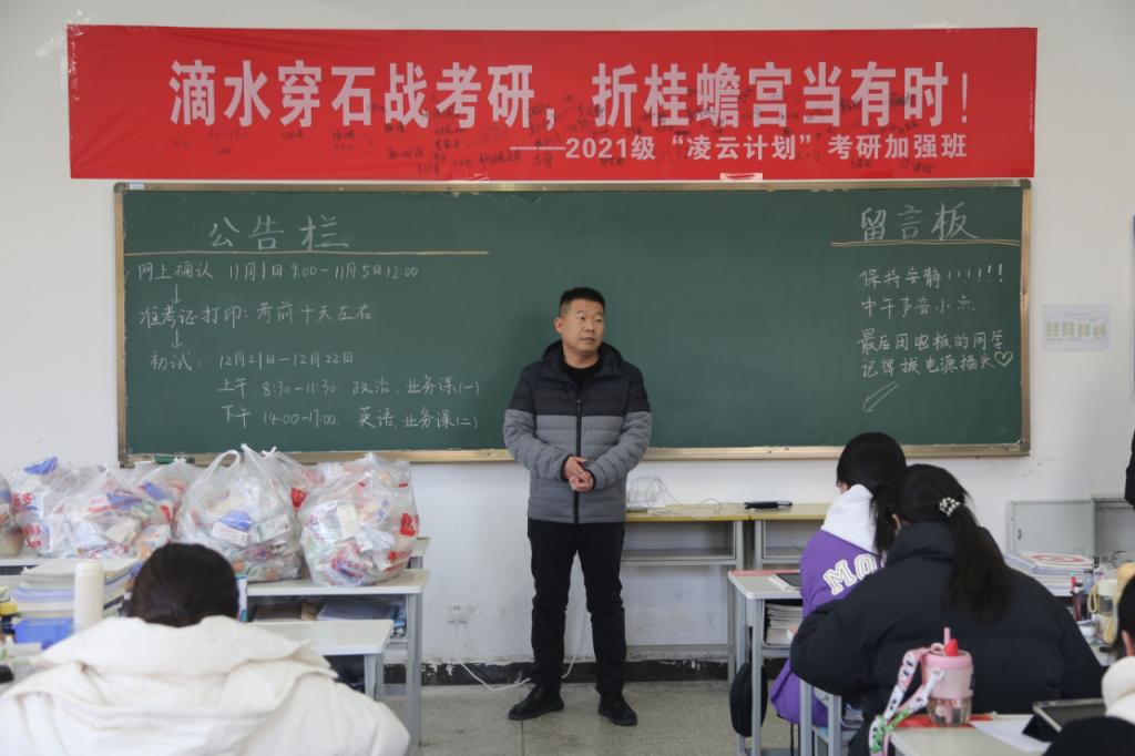 为激励考研学子坚定信念、保持良好备考状态,我院于11月25日开展“考研学子送温暖”活动。学院领导班子、毕业班辅导员和学生会成员参加活动。