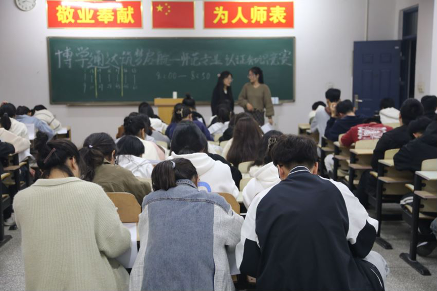 本次竞赛涵盖了师范专业认证相关知识、校史校情和数学与应用数学专业基本情况三部分,采用笔试、闭卷的方式进行,满分为100分。竞赛期间,学生们认真答题,学院辅导员到场巡考,考察学生们的答题情况,以保证师范专业认证知识竞赛有序进行。赛后,按参赛人数设置一等奖5%、二等奖10%、三等奖15%。同时,针对竞赛不合格的同学,将组织集中学习。