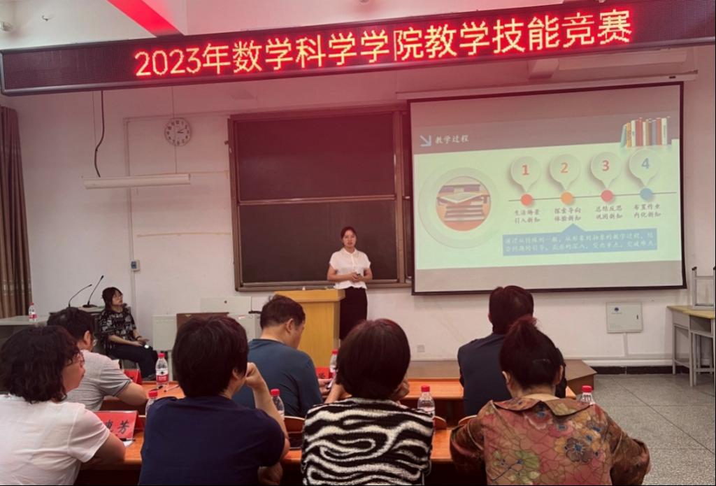 为落实立德树人根本任务,提升教师教学创新能力,我院于6月15日下午在A10-103成功举办数学科学学院青年教师教学技能竞赛,本次比赛邀请学校教学督导组组长韩运侠教授、学院原院长刘麦学教授、张之正教授以及牛惠芳、张彩环、叶晓丽、薛琳老师担任评委,学院全体教师进行了观摩交流。