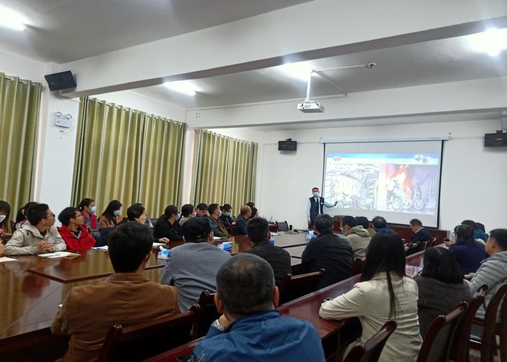 河南省消防协会钱主任以“落实消防责任,防范安全风险”为题,结合高校实验室火灾等案例,详细介绍了各类火灾的诱因,并展示一幅幅触目惊心的火灾场面,播放了大量发人深省的视频,让大家直观感受到火灾带来的严重伤害,深刻认识到掌握消防知识的重要性。随后,钱主任针对发生火灾如何正确报告火警、扑救初起火灾、正确疏散逃生等消防安全知识进行讲解。他告诫大家,消防安全要防患于未然,要时刻有防范意识、逃生知识。