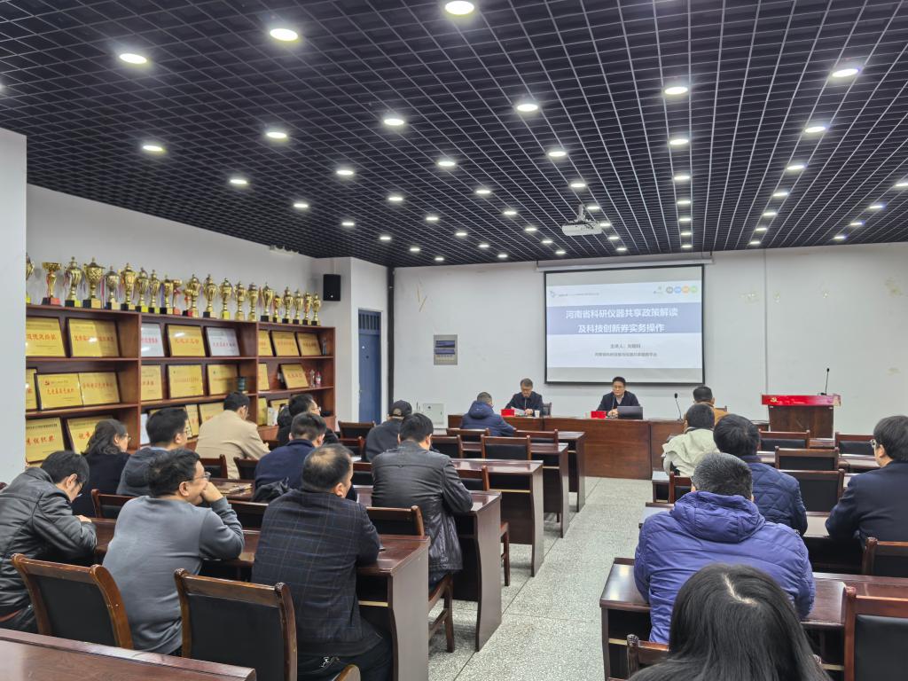 11月19日上午,河南省科研设施与仪器共享服务平台主任刘朝科受邀到我校开展关于“河南省科研仪器共享政策解读及科技创新券实务操作”的政策宣讲。宣讲会在化学楼A15-215会议室举行,由实验室建设与管理中心主任冯勋主持,科研处、财务处、国有资产管理处、绿色产业研究院相关负责人,各相关学院分管实验室工作的副院长、共享系统管理员、大型仪器设备负责老师等参加了会议。