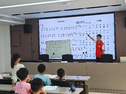 西棘针社区的红歌教学课堂同样热烈。《爱我中华》《小星星》等经典歌曲的旋律回荡在教室中。活动以“非遗润童心,文化共传承”为主题,通过课业辅导、艺术课堂、红色故事宣讲等丰富形式,为社区儿童带来多彩暑期体验。