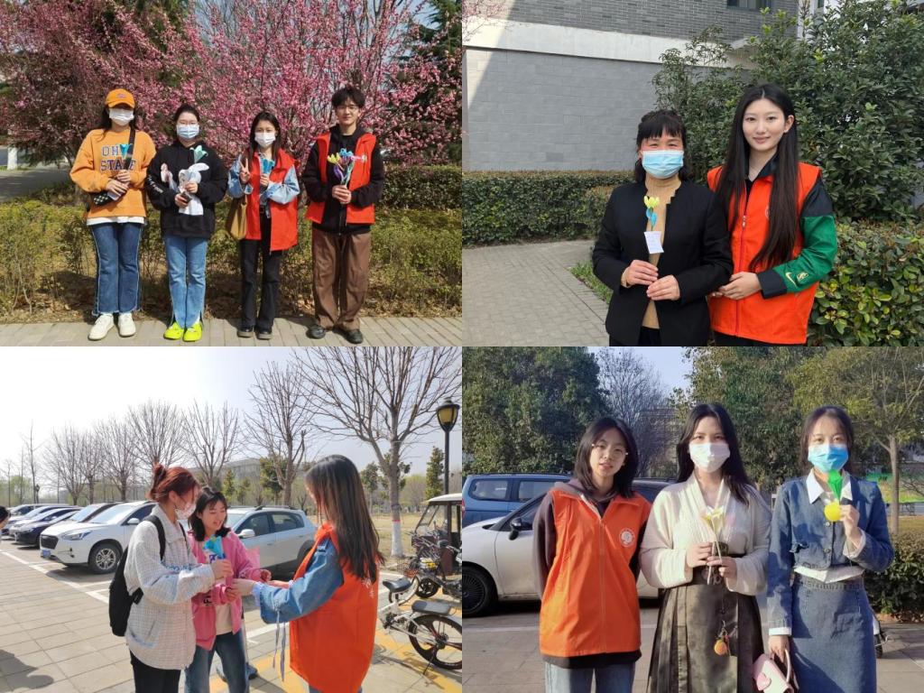 在遇见美好—为女性师生送花送祝福活动中,校学生会工作人员把事先用扭扭棒、彩纸等材料制作的花束和祝福语,随机赠送给女性师生,向她们表达美好的祝福和真诚的感谢。收到祝福的师生们纷纷露出幸福的笑容,并与同学们合影留念,现场洋溢着欢乐温馨的氛围。