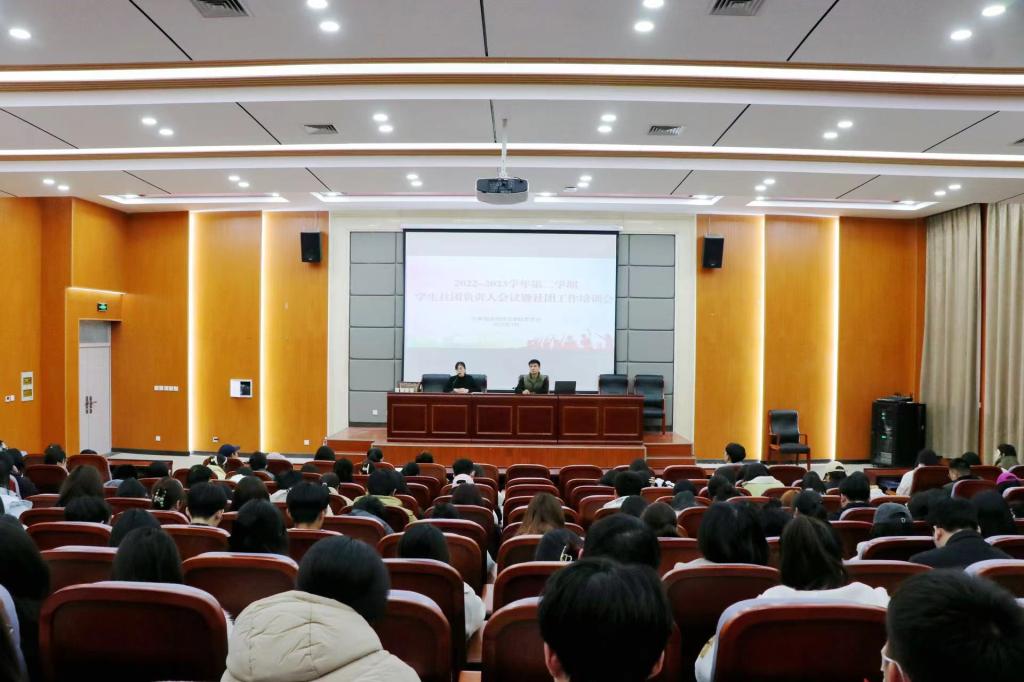 为加强学生社团建设和管理,推进社团工作健康发展,3月16日下午,我校在逸夫楼G5-202报告厅召开2022-2023学年第二学期学生社团负责人会议暨社团工作培训会,校团委副书记高莹、社团管理部负责人乔亮亮以及各学生社团团支书、社长参加会议。