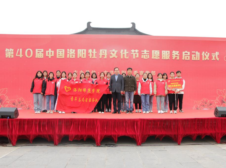 3月25日上午,由洛阳市委宣传部、洛阳市文明办、洛阳市志愿者联合会主办的第40届中国牡丹文化节志愿服务启动仪式在洛龙区定鼎门南广场举行,我校选派20余名青年志愿者参加。