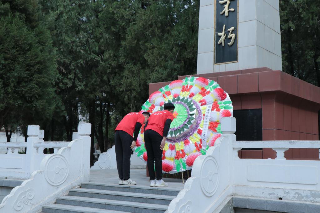洛宁县烈士陵园内苍松翠柏环绕,气氛庄重肃穆。巍峨耸立的“革命烈士永垂不朽”纪念碑前,翔梧班学员鞠躬默哀,并向烈士们敬献花圈。学员们仔细为李翔梧烈士铜像和纪念碑清理散落的枝叶、擦拭灰尘,认真阅读烈士事迹,用自己的方式表达对革命烈士的无限哀思以及崇敬之心、感恩之情。