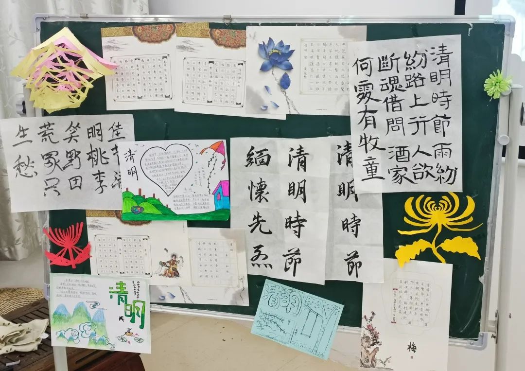 学员们通过诗词分享、制作作品、集中展示等环节,走进清明,了解和弘扬中华优秀传统文化。在寻觅清明踪迹环节中,学员们通过诗词接龙与你划我猜等活动,积极分享有关清明的诗词与文化习俗,感受中华古诗词的意境之美。在描绘心中清明环节中,学员们积极响应,通过书法、手工剪影、手抄报绘制等方式,把清明感悟融入其中,在文化熏陶中儒雅气质,涵养情操。