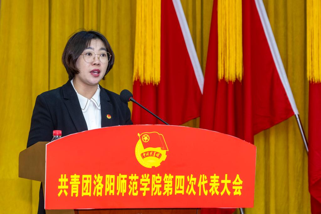 团市委书记李华敏致辞,代表共青团洛阳市委向大会的召开表示热烈的祝贺,并对我校共青团工作取得的可喜成绩予以肯定。他希望广大团员青年能以本次大会为契机,高扬理想风帆,自觉到基层一线、艰苦环境中经风雨、见世面、壮筋骨、长才干,与祖国共奋进,与人民共命运,与学校共发展,在现代化洛阳建设的生动实践中积极担当作为。