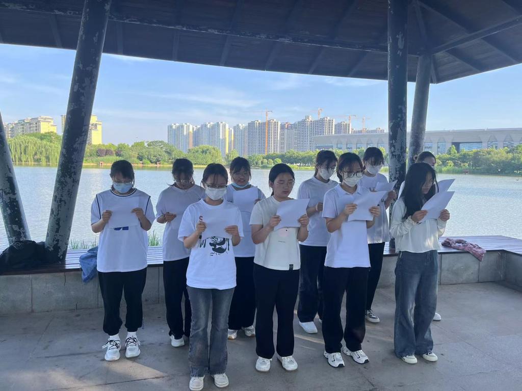在月明湖开阳岛“青马”学员理论学习角,“青马”学员按学院分成小组,每天以“青马晨读”的方式,围绕习近平新时代中国特色社会主义思想的重要著作、重要论述、重要讲话精神,党的二十大报告、马克思主义经典著作以及马克思主义中国化的理论成果等内容进行诵读和研讨。
