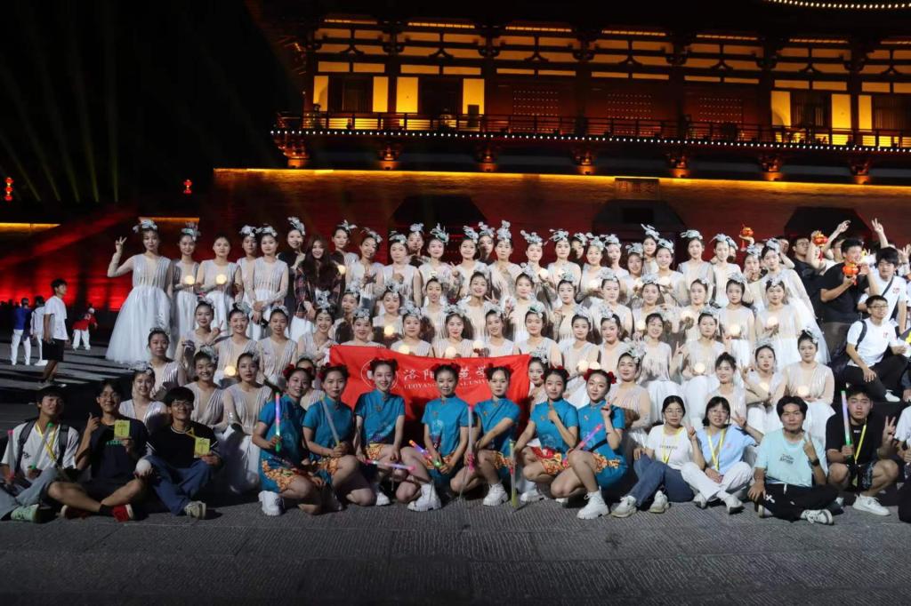在闭幕式开场舞蹈《星河汇聚》中,64名“星光女神”手持点点星光,在夜空的映衬下,宛如天上的星光散落人间,显得格外圣洁;在《携手绘精彩-中原文化》篇章中,我校12名学子与电音潮乐组合,化身国潮少女表演的河洛大鼓吸引了现场众多观众驻足观看;在《惜别情依依-友谊长存》篇章中,100名合唱队员载歌载舞,在《友谊地久天长》的歌声中,将闭幕式现场气氛推向了高潮。至此,河南省第十四届运动会暨第八届残疾人运动会完美落幕。