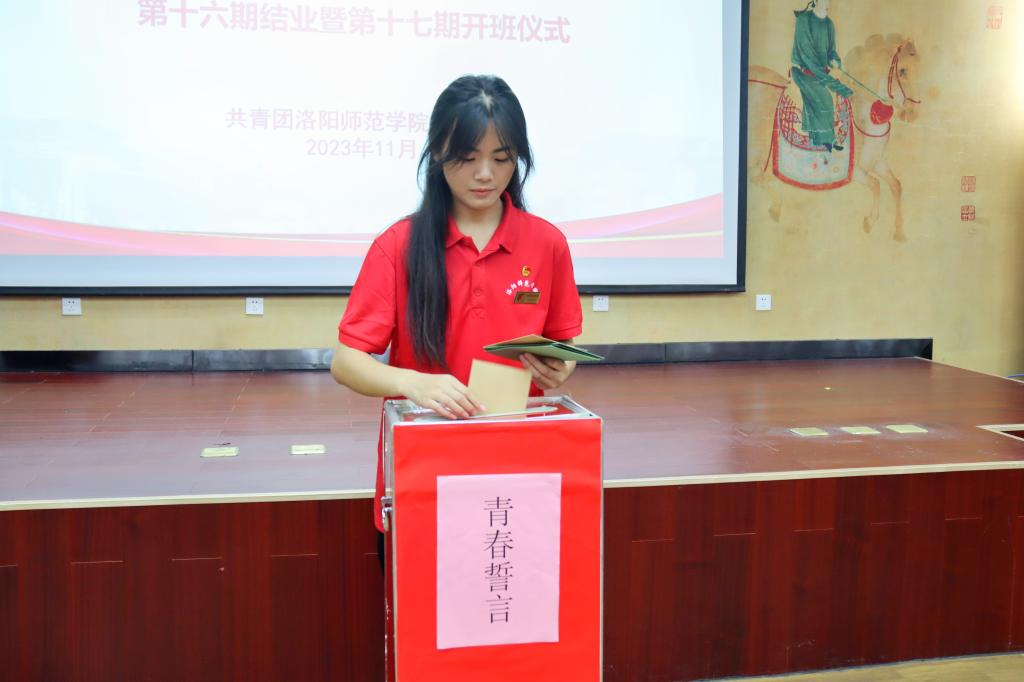 第十六期翔梧班学员代表邢瑶瑶汇报第十六期翔梧班学习情况,她表示会时刻坚定理想信念,继续传承翔梧精神,担当使命,为实现中华民族伟大复兴努力奋斗。第十六期翔梧班学员将自己对未来的规划和期许写下并投入到青春誓言收集箱中。
