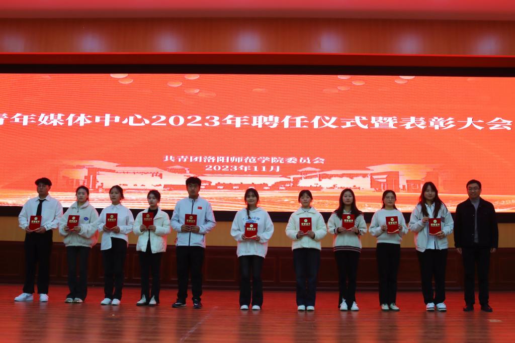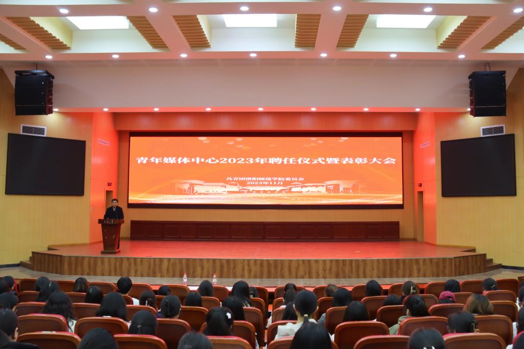 11月16日下午,青年媒体中心2023年聘任仪式暨表彰大会在G1-112报告厅举办,校团委副书记孙志隆、宣传部部长郭利霞以及青年媒体中心全体成员参加仪式。