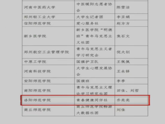 近日,中共河南省委教育工作委员会、河南省教育厅公布2023年度全省教育系统“两创两争”活动先进集体和先进个人评选结果,我校青春健康同伴社荣获河南省“文明社团”荣誉称号。