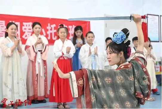 国学班成员先后到伊滨区福民巷小学、伊滨区李村镇陈沟小学、洛龙区第五实验学校、伊滨区元付社区月明湾小区和洛龙区安乐街道安东社区邻里中心,以寓教于乐的形式,面向中小学生讲授和传播中华传统文化知识,主要包括手工剪纸、武术和太极拳的理论体系、传统礼仪和书法等多项内容。通过丰富多彩、生动有趣的学习活动,让汉服、武术、剪纸、书法等国学经典深入学生课堂与生活,用青春力量推动中华优秀传统文化发扬光大、代代相传。