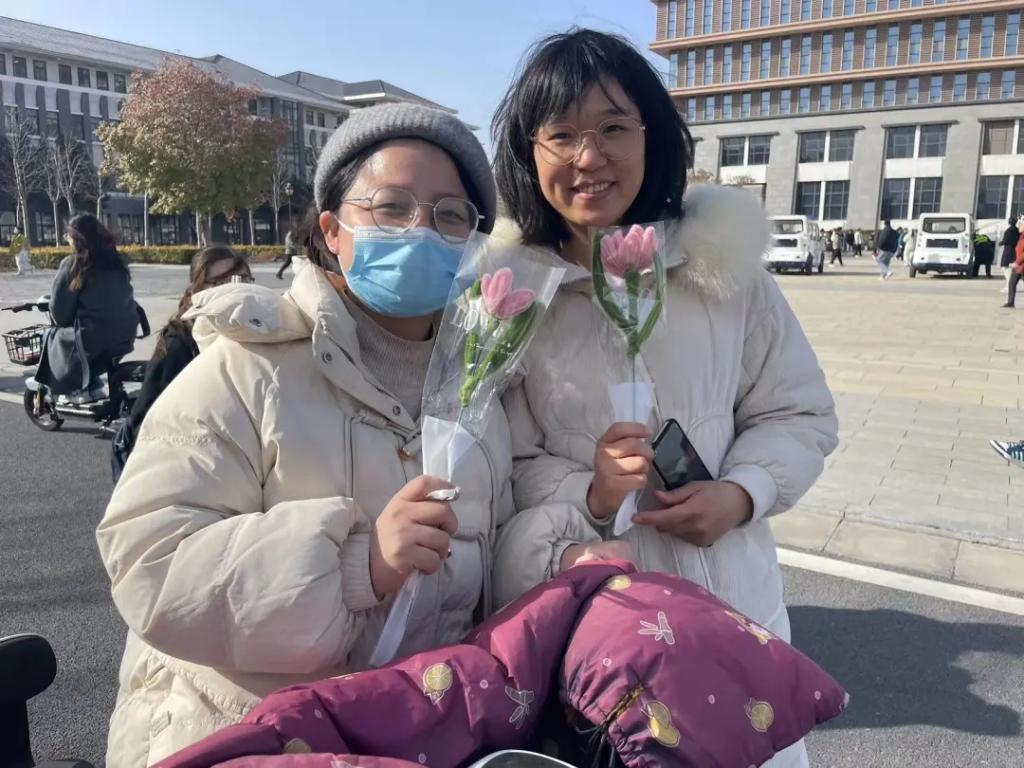 在“手留余香—礼送花束与祝福”环节中,校学生会工作人员和参与活动的同学们一起将制作好的花束,随机赠送给女性师生,给予最真挚的美好祝福。收到祝福的同学们流露出灿烂幸福的笑容,并与同学们拍照留念。同学们也获得了“赠人玫瑰,手留余香”的喜悦,现场洋溢着幸福轻松的氛围。