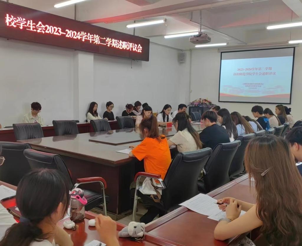 为深入贯彻落实《关于推动高校学生会(研究生会)深化改革的若干意见》相关要求,进一步加强学生会建设,6月20日下午,校学生会2023-2024学年第二学期述职评议会在敦行楼412会议室召开。校团委副书记郭利霞,党委学工部(学生处)综合科秦乔迁,校团委社团管理部王怡博,以及各学院学生代表参与会议。
