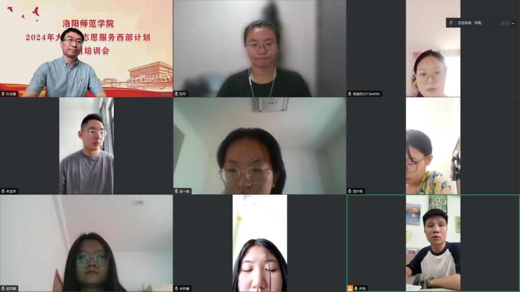 为进一步弘扬“奉献、友爱、互助、进步”的志愿精神,增强志愿者的身份意识、服务意识、组织归属感和事业忠诚度,关心志愿者成长发展,鼓励青年学生在基层贡献青春力量。7月10日上午,我校通过线上腾讯视频会议召开2024年西部计划志愿者岗前辅导培训,校团委副书记孙志隆、创新实践部副部长乔亮亮以及全体录取志愿者参加了会议。