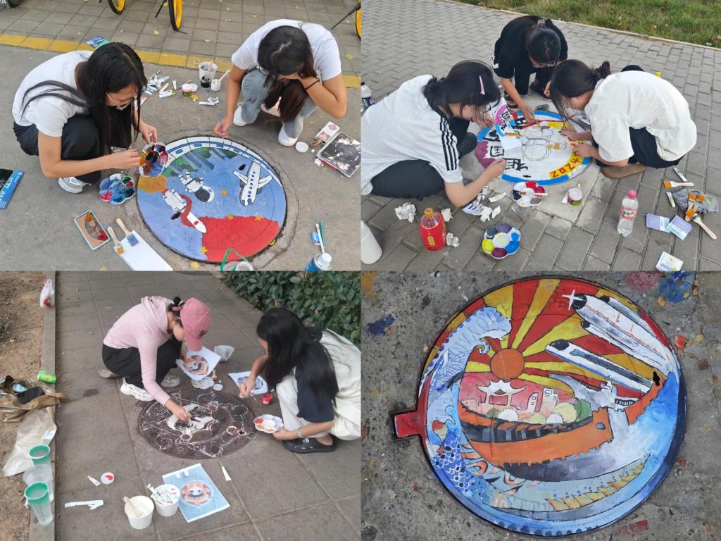 为庆祝中华人民共和国成立75周年,进一步激发广大学生爱党爱国的深厚情怀,弘扬爱国主义精神,助力校园文明创建。近日,校学生会联合开阳书院2号学生社区学生会和鸿都书院2号学生社区学生会开展了“青春绘梦,祖国在心”校园井盖艺术绘制活动。