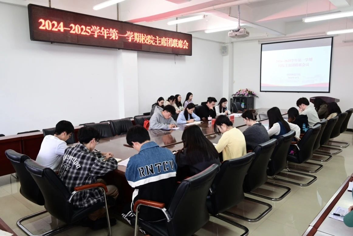 为进一步巩固深化学生会改革建设成果,加强校院两级学生会的沟通协作,推动“我为同学做实事”活动相关工作顺利开展,提升学生会组织的凝聚力和服务力,我校于10月31日下午在敦行楼412会议室召开2024-2025学年校院学生会主席团联席会第一次会议。校团委副书记、校秘书长郭利霞,校团委社团管理部副部长王怡博以及校院学生会主席团成员参加此次会议。会议由校学生会主席团成员文畅主持。