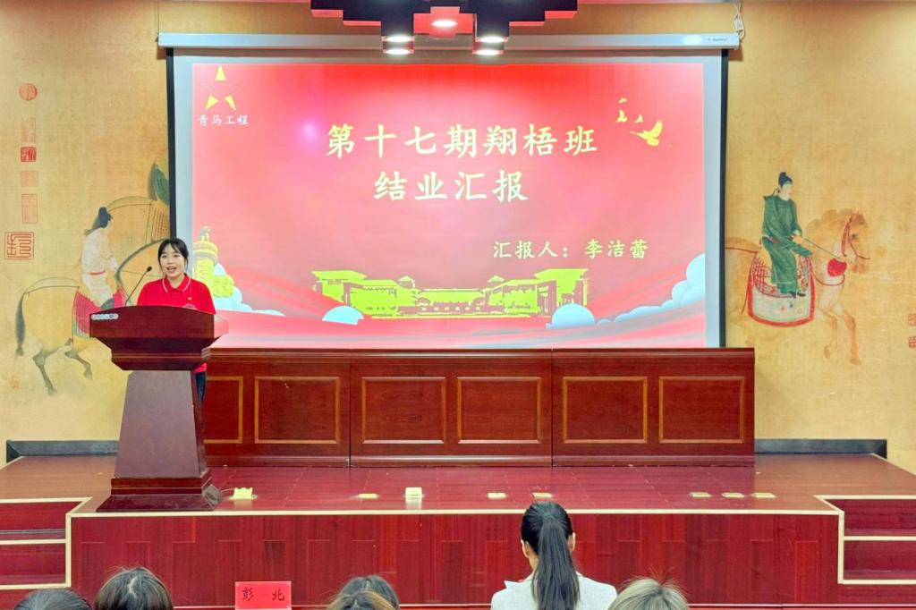 校团委书记高莹为翔梧班第十七期学员代表颁发结业证书