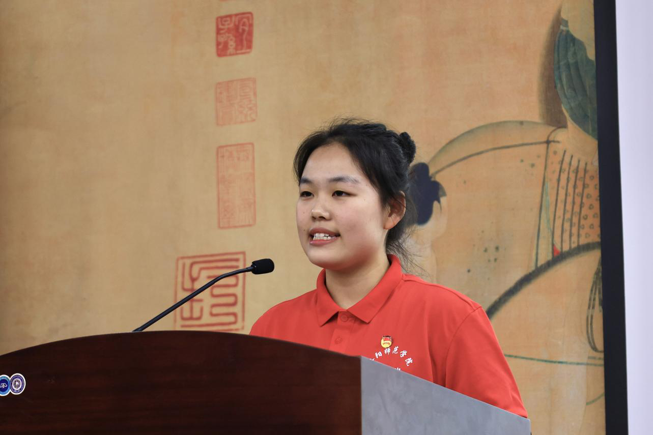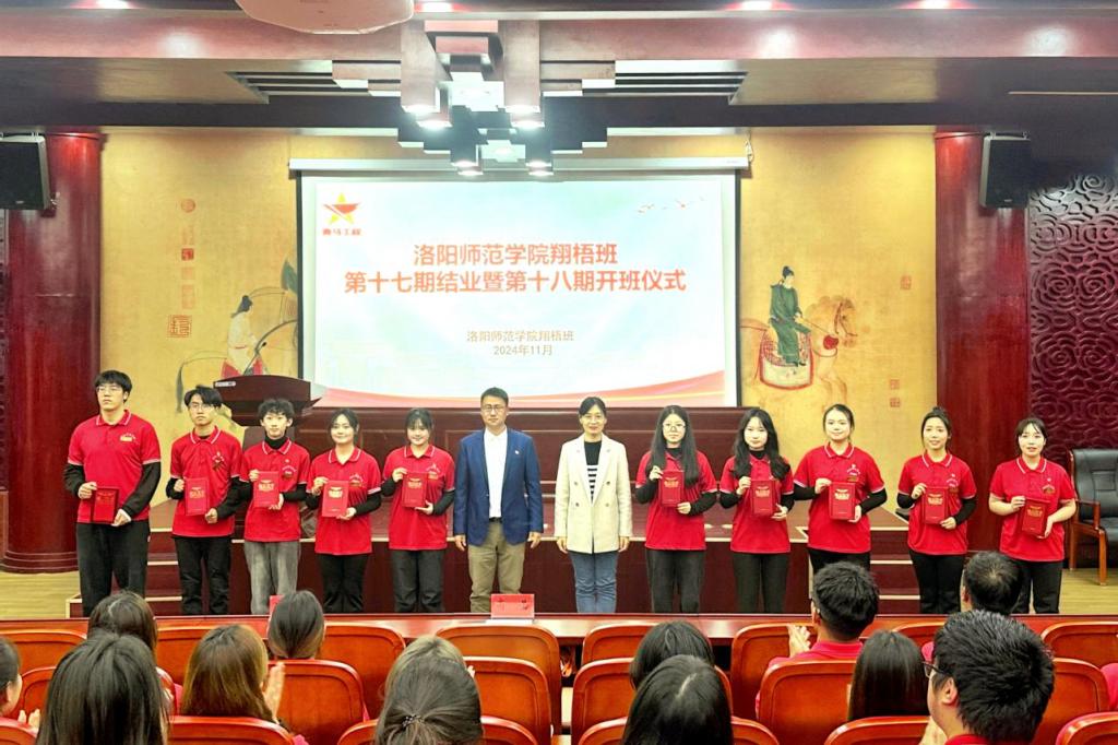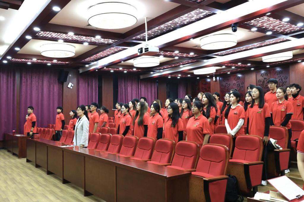 仪式在嘹亮的国歌声中拉开序幕。翔梧班第十七期学员李洁蕾发言,汇报了翔梧班一年来的理论学习、社会实践、志愿服务等培养成果,并表示要进一步发扬翔梧精神,坚定理想信念,为实现中华民族伟大复兴的中国梦而努力奋斗。