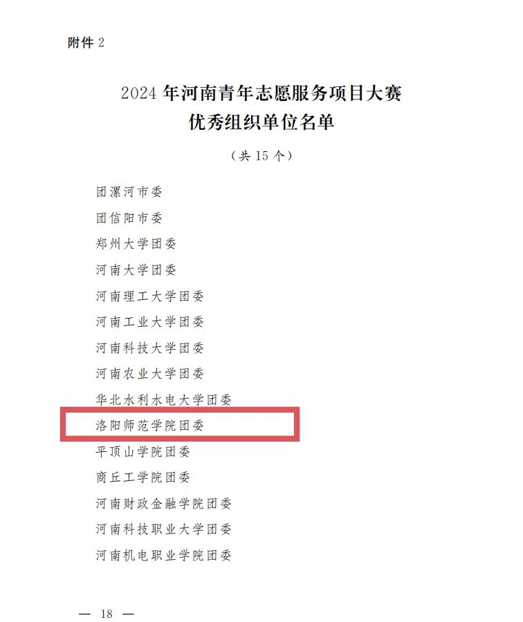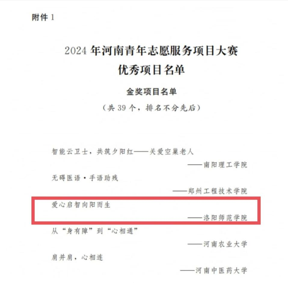 近日,第七届中国青年志愿服务项目大赛河南赛区选拔赛暨2024年河南青年志愿服务项目大赛获奖名单公布,我校获得一金二银的历史最好成绩,校团委荣获“优秀组织单位”。其中,学前教育学院“爱心启智向阳而生”项目荣获金奖,美术与艺术设计学院“微火成炬 向美而行”项目、商学院“为爱守护,‘救’在身边”项目荣获银奖。