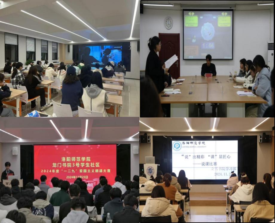 问礼书院1号学生社区和开阳书院2号学生社区举办了“观红色电影,传爱国精神”观影活动,让同学们重温革命先辈的奋斗历程,汲取奋进力量;问礼书院2号学生社区和立雪书院开展了“说出精彩,课显匠心”说课比赛,有效激发了师范生的教学热情,提高了他们的教学设计和表达能力;问礼书院3号学生社区开展了“温暖学业路,帮扶共前行”学业帮扶活动,以朋辈互助的方式帮助同学提高学习效率,进一步促进优良学风建设;问礼书院1号学生社区、龙门书院2号学生社区和鸿都书院1号学生社区开展了“宏辞论道,以辩会友”大学生艺术节辩论赛,进一步丰富校园文化生活,提升同学们的语言表达能力和逻辑思维能力;龙门书院3号学生社区举办了“一二·九”爱国主义朗诵大赛,引导广大学生牢记历史使命、坚定理想信念、厚植爱国情怀;立雪书院学生社区开展了“防范于心,反诈于行”防电信诈骗情景剧活动,通过寓教于乐的方式帮助同学们掌握防诈骗技巧,增强防电信诈骗意识;开阳书院1号学生社区开展了“舞动青春,跳出健康”广场舞活动和“打破烦恼”心理舒压主题活动,为同学们提供了放松身心的休闲娱乐空间。