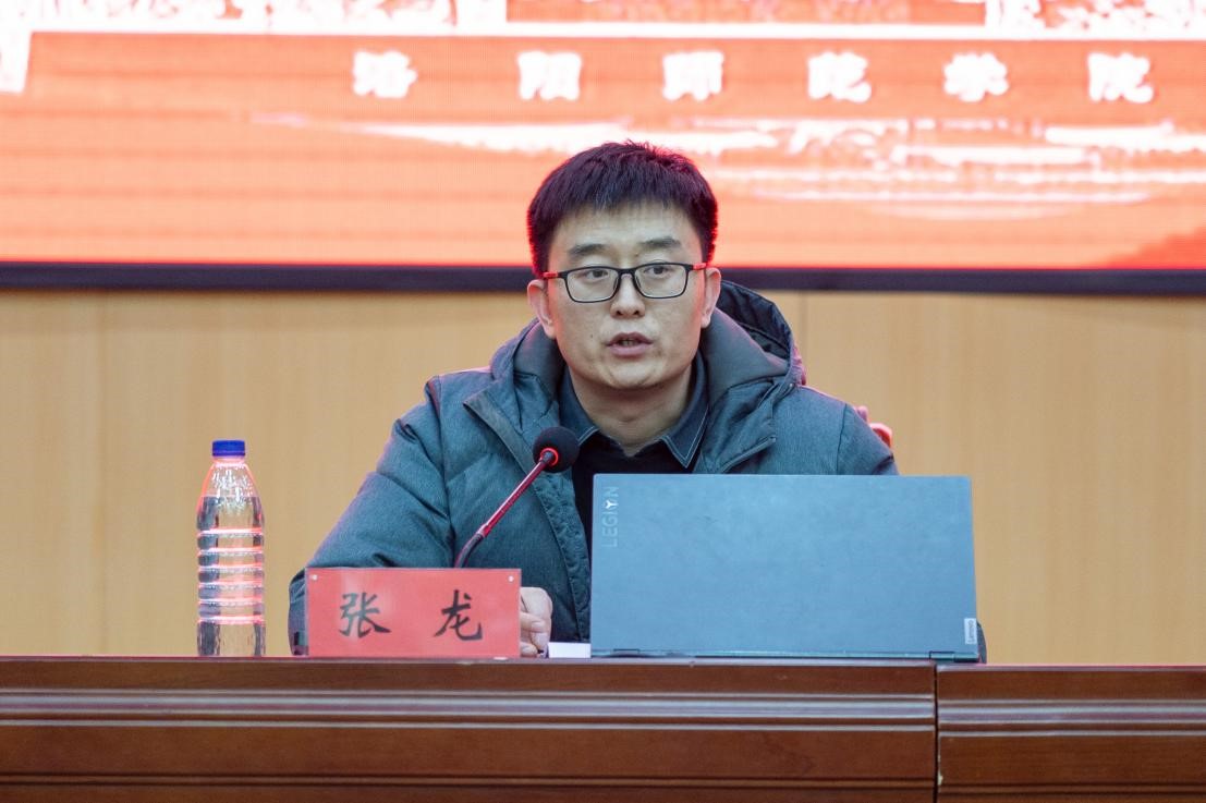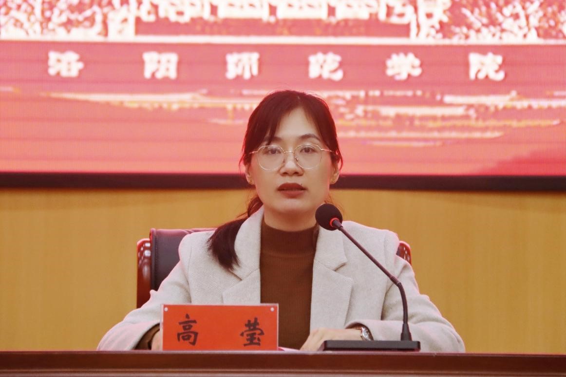 校团委副书记郭利霞作《(洛阳师范学院学生第二课堂学分认证成绩管理办法(修订)》解读》专题讲座。她从“认识第二课堂”“第二课堂量化成绩与学分认证成绩”“团支书如何发挥作用”三个方面着手,讲解了“第二课堂”的重要性,带领大家深入学习了改革后的第二课堂学分认证成绩管理办法等文件。