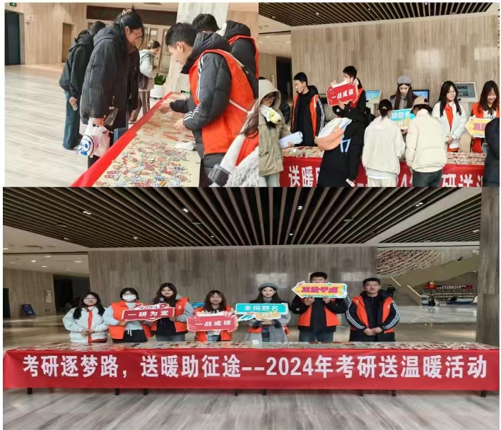 冬日有回音,“研”途有温情。为帮助考研学子们缓解压力、提振信心,12月5日下午,校学生会于图书馆一楼开展了“考研逐梦路,送暖助征途”考研送温暖活动。