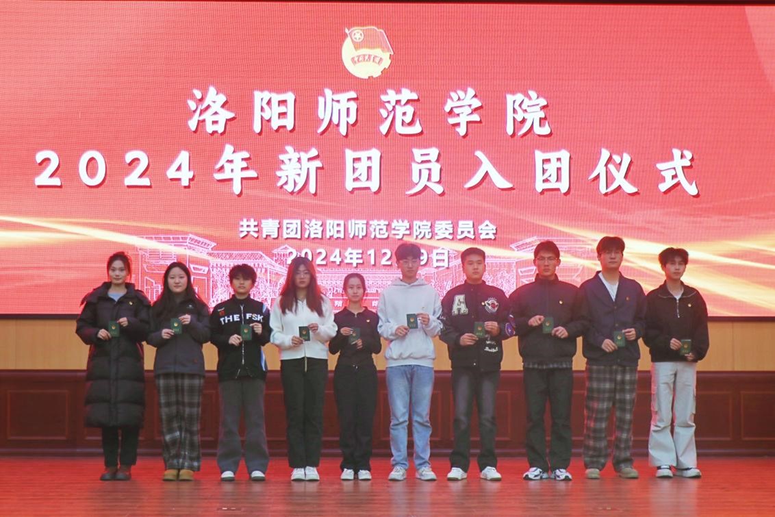 入团仪式在庄严的国歌声中拉开帷幕。会议宣读了《共青团洛阳师范学院委员会关于发展王源等124名同学入团的决定》。优秀团员代表为新团员代表颁发团员证,佩戴团员徽章。全体新团员在领誓人的带领下,面向团旗,高举右拳,庄严宣誓,铿锵有力的誓言、饱满的精神面貌,彰显了新团员们为共产主义事业而奋斗的决心。