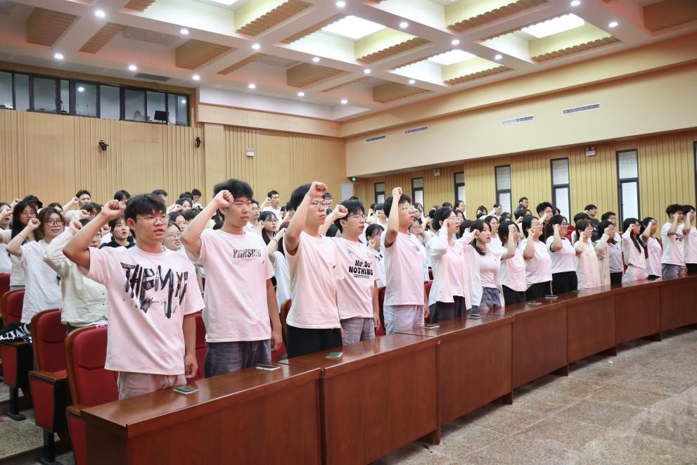 6月5日下午,我校在G1-112报告厅举行2025年第一批新团员入团仪式。93名新发展团员以及党团员代表等参加,校团委副书记郭利霞出席。