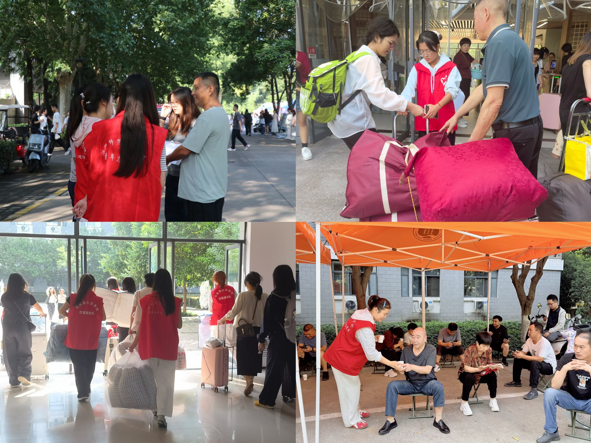 重点在火车站、高铁站和校内交通路口、学生报到点等地设立志愿服务点,配备数名志愿者,他们身着红马甲佩戴小红帽,手持迎新牌,主动迎候新生——看到携带行李的新生及家长,便第一时间上前问询,协助搬运行李、指引道路;面对“报到流程怎么走”“校园宿舍条件如何”等高频问题,志愿者们耐心细致地逐一解答,用暖心的服务传递着学校的关爱与温暖。