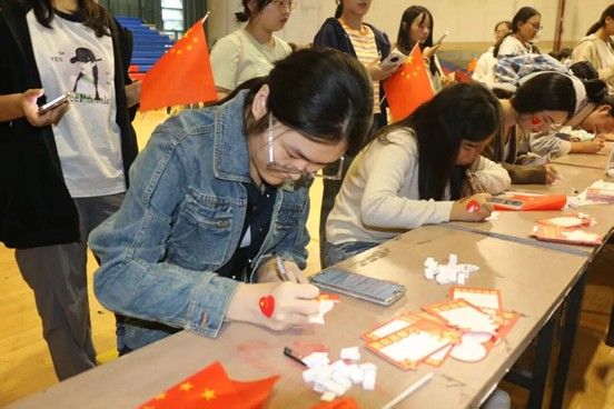 本次游园会精心设置了六大活动主题区域,并推出“集章打卡赢好礼”活动,每位同学领取一张专属“游园集章卡”,共同开启一场趣味与文化并重的探索之旅。在“深情告白祖国”三行情诗创作活动中,同学们以笔为媒,将对祖国的赤诚与祝福凝练成三行短诗,字里行间满是真挚的家国情怀。在“强国复兴有我”四史竞答活动中,同学们在答题过程中不断深化对国家发展的认知,坚定理想信念。在“国庆趣味嘉年华,古韵投壶乐翻天”趣味投壶活动中,同学们在投掷中感受中华优秀传统文化的魅力。在“巧手中国结,非遗迎国庆”手工制作活动中,同学们在亲手创作中传承非遗技艺,让文化根脉在指尖延续......