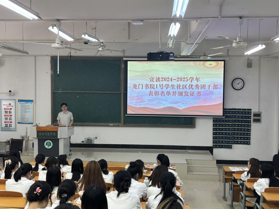 大会在庄严的国歌声中拉开序幕。书院上届团委学生兼职副书记郑瑞娟和学生会主席团成员王予彦发言,分别对过去一年的工作进行了总结,汇报了在思想引领、成长服务等方面取得的成效,并寄语新一届团学干部永葆“初心”,秉持“匠心”,怀揣“真心”,切实做到联系同学、服务同学。郑力老师宣读了《关于表彰龙门书院1号学生社区2024-2025学年优秀团干部的决定》及新一届团学干部任职名单,为获奖者颁发荣誉证书。新任团委学生兼职副书记何佳音与学生会主席团成员杨文洁分别发言,号召全体成员以更饱满的热情和坚定的信念投身工作,以服务为圆心,以创新为羽翼,不断开创学生工作新篇章。