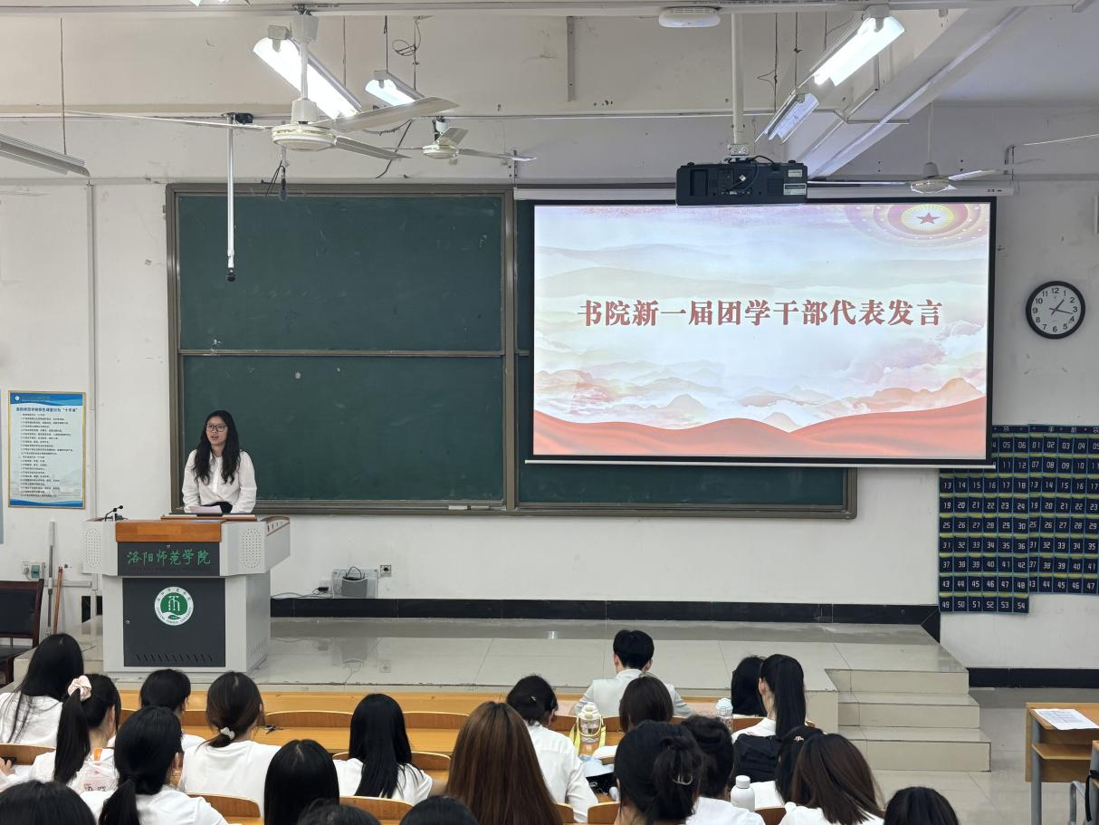 班鑫老师作总结讲话,她充分肯定了上一届团学干部取得的突出成绩,并对他们的辛勤付出表示感谢。面向新一届团学干部,班老师提出三点期望:一是以学为先,牢记学生本色,平衡好学业与学生工作的关系;二是以干为要,倾听学生需求,真正成为同学们的知心人、贴心人;三是以德为本,牢记共青团的政治属性,在奉献中锤炼品格、增长才干。