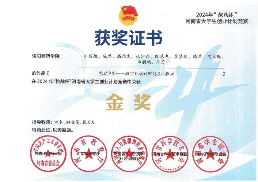 牛骏驰,中共党员,洛阳师范学院美术与艺术设计学院2021级视觉传达设计专业学生。在校期间,获得多项荣誉:国家级2项、省级9项、校级33项,院级13项。其中个人获评河南省优秀学生干部、大学生党员标兵、十佳杰出青年、优秀毕业生、优秀学生干部、三好学生、三好学生标兵、优秀团员等荣誉;学业成绩方面,获得1次国家奖学金、2次洛师一等奖学金;创新创业竞赛方面,获得挑战杯大学生创业计划竞赛省级金奖、中国国际大学生创新大赛省级铜奖;学科竞赛方面,全省高校第四届创意河南艺术设计大赛、河南省工业设计大赛、河南省文化创意大赛等比赛中获多项省级奖项。