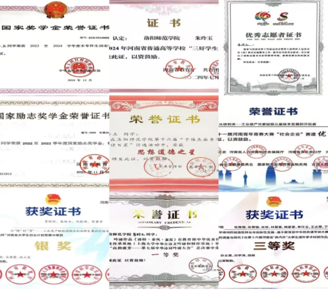 “青春不以山河为远,志愿只向国家未来”朱玲玉始终践行着奉献精神,积极投身社会实践与志愿服务活动。从美育支教、乡村推普的实践活动,到社区结对和省运会的志愿服务,她以顽强的毅力和积极向上的态度展现洛师学子的青春风采,以用实际行动诠释着新时代青年的奉献精神。