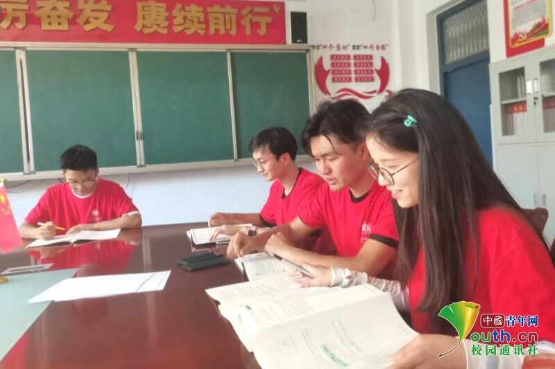 图片发自中青校园App图为实践队员们根据期末考试的范围进行分配任务,并进行针对性备课的画面。中国青年网通讯员 崔婧 摄