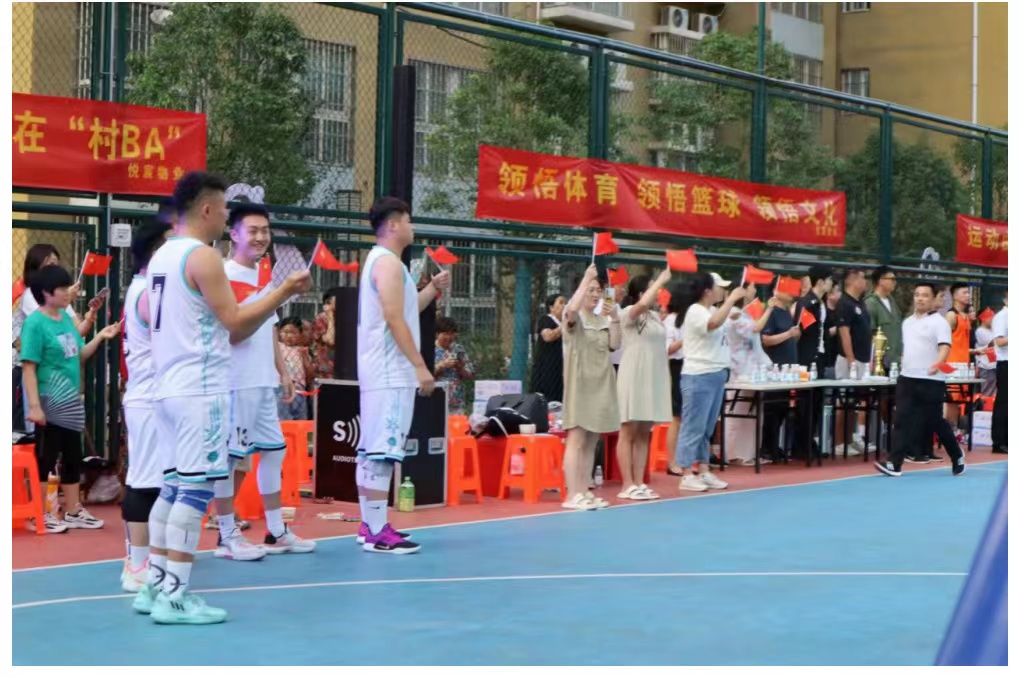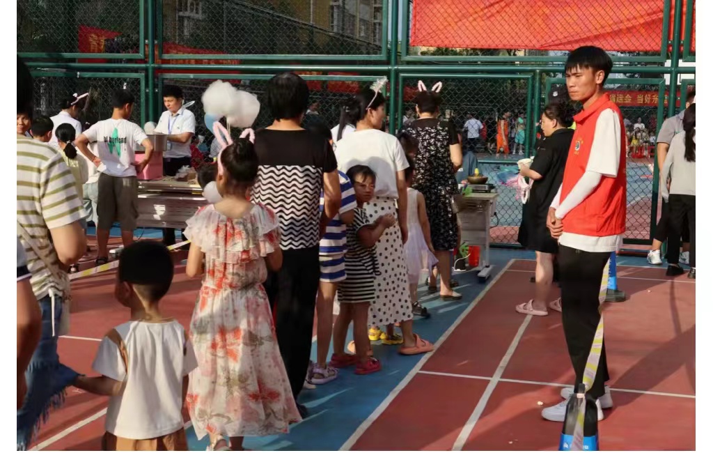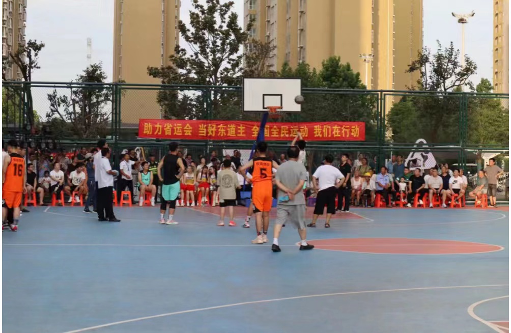 2023年7月1日下午,为助力省运会并贯彻党的二十大报告提出的“促进群众体育和竞技体育全面发展,加快建设体育强国”的指示,洛阳市伊滨区新源嘉苑社区举办“村NBA”篮球赛,洛阳师范学院文学院向阳花爱心会“同音筑梦,稚暮和鸣”暑期实践队积极参与,为运动员们加油助威、负责现场秩序以及活动结束后的卫生管理工作。