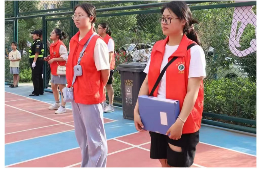 图为社会实践队员协助维护篮球场内秩序。中国青年网通讯员 姜博洋 供图