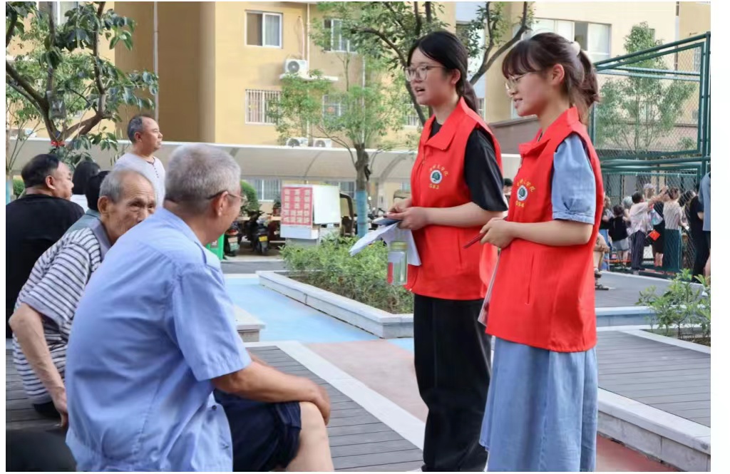 图为社会实践队员与社区居民进行亲切交流。中国青年网通讯员 姜博洋 供图