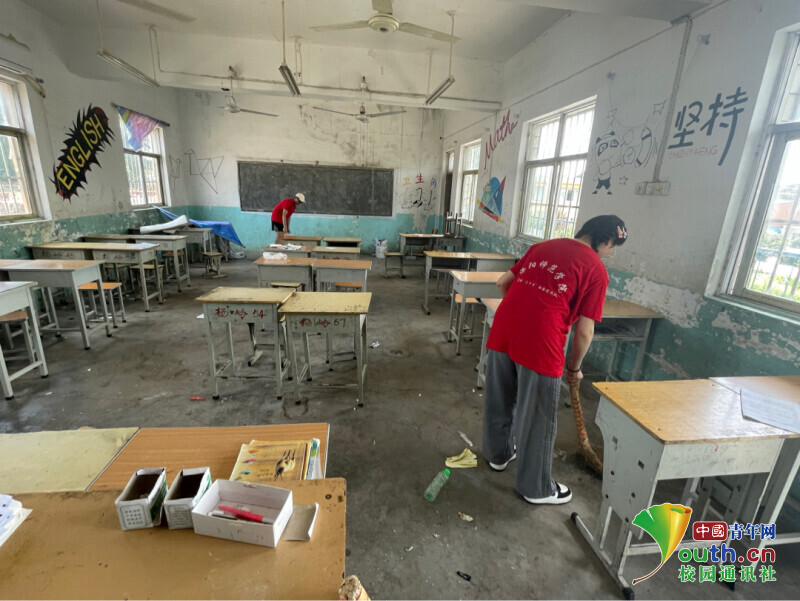 图为实践队员为迎接学生入学打扫教室卫生。中国青年网通讯员 胡如冰 供图