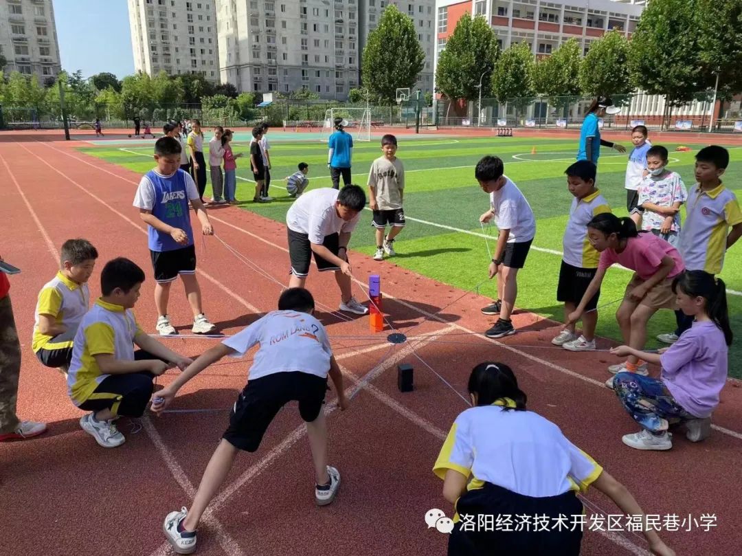 “加油!加油!耶!”,假期,伊滨区福民巷小学本该安静的校园,却在盛夏里传来了一浪高过一浪的加油声和呐喊声。原来,操场上正有序开展着一场趣味运动会……这是洛阳师范学院体育学院“以体筑梦,‘益’起前行”益行运动暑期社会实践队在该校进行体育教学的火热现场。