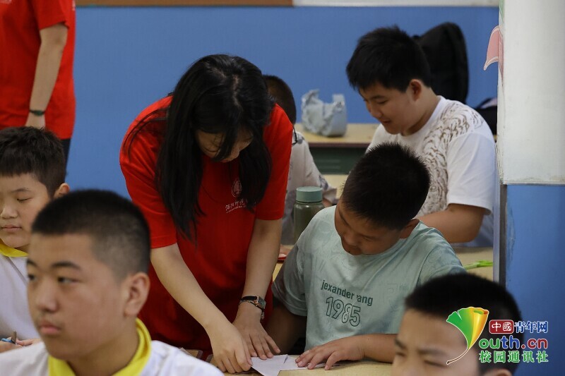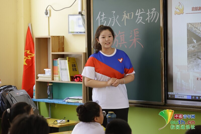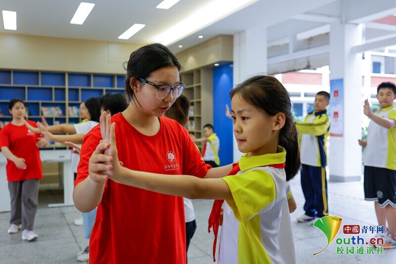 图为实践队员曾彦进行武术教学。中国青年网通讯员 田益欣 供图